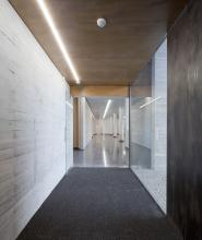 O núcleo de comunicacións verticais actúa como charnela dos distintos volumes.
