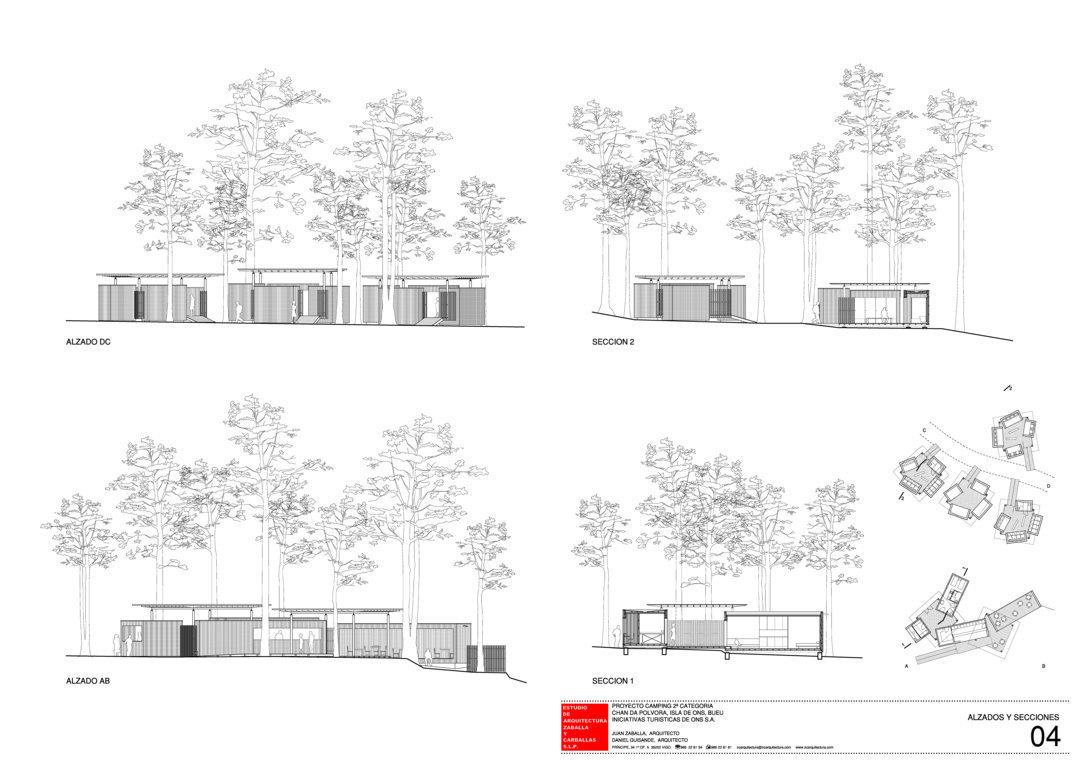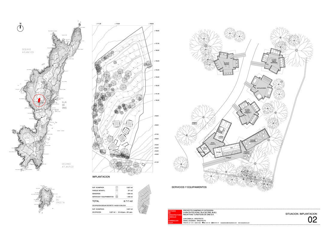 Como inicio del proceso de redacción de este proyecto, se ha realizado un levantamiento topográfico del terreno y de todos los árboles existentes, acomodando la distribución de parcelas y construcciones a los mismos y conservando gran parte de la sombra necesaria. Se plantea la sustitución progresiva de los eucaliptos según las directrices del Parque Nacional.