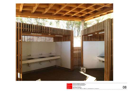 Los servicios y equipamientos necesarios para el funcionamiento del camping, se sitúan a lo largo del tramo inicial del sendero en bucle, en su cota más baja.