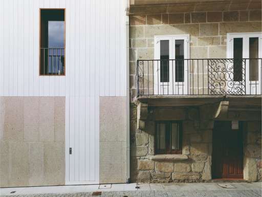 Volver a construir una pequeña vivienda de poco más de 3 metros de ancho y 16 de fondo en el extremo de una manzana. La casa anterior: bar y vivienda con medianera ciega, bien orientada, situada en el centro histórico de esta villa de la Costa da Morte.