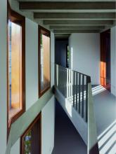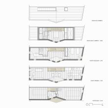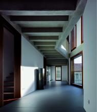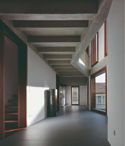 Hacer un planteamiento sencillo basado en la dimensión longitudinal de un espacio diáfano y en la centralidad de los accesos. La escalera, arrimada a la medianería, deja estancias a cada lado, mientras la fachada, en su parte central, le hace sitio como saliente en plantas altas o la aproxima como entrada a cubierto en el acceso principal. Las alturas dobles y las estrechas ventanas-balcón, relacionan las plantas entre sí y el espacio exterior, sin llegar a mostrarlo todo.