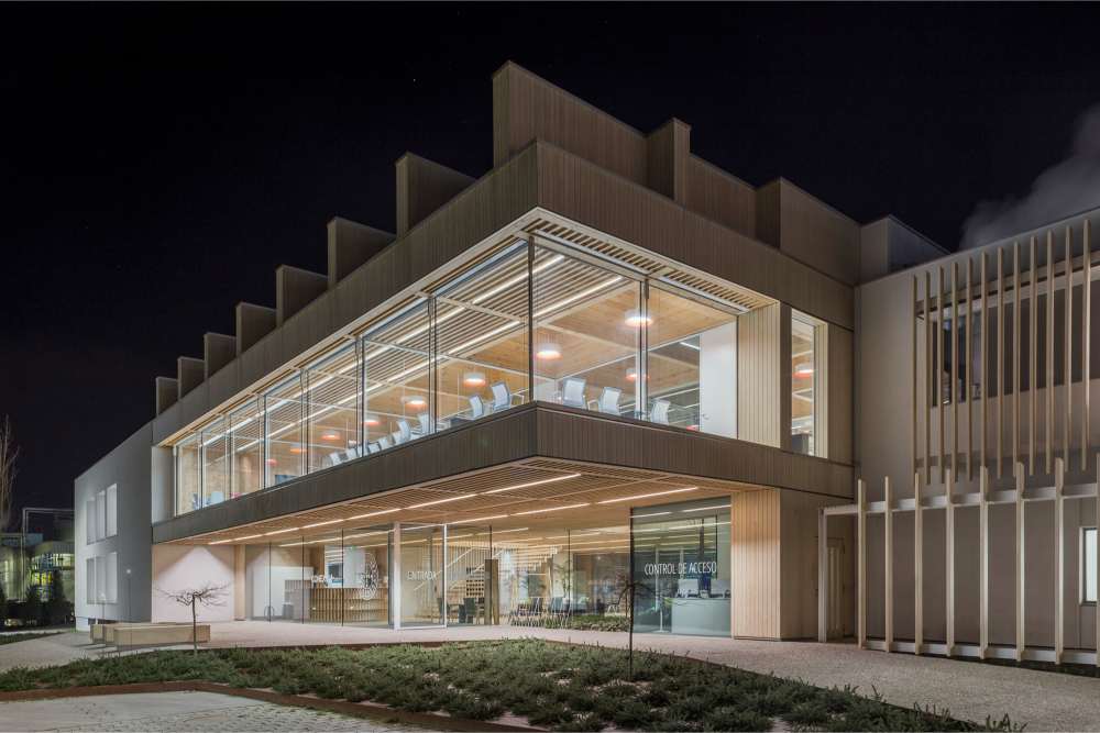 A actuación comprende a reforma integral de dous edificios de oficinas existentes, a construción dun novo edificio de conexión entre ambos e a urbanización da súa contorna. O forte carácter industrial da localización orienta os criterios de intervención e deseño, introducindo novos valores de sustentabilidade, dimensión humana e conservación do seu propio patrimonio. O novo carácter da intervención transcende o seu ámbito inicial, amabilizándoo e humanizándoo en todas as súas dimensións á vez que incorpora e convive coa paisaxe forestal e industrial circundante.