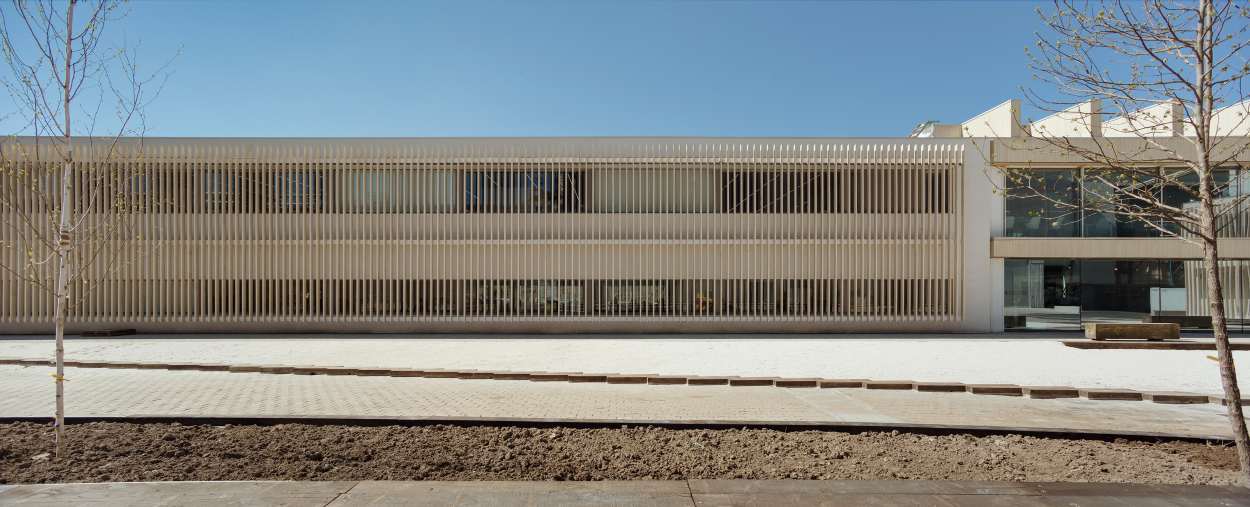 No novo edificio de conexión e acceso principal, óptase por unha retícula estrutural ordenadora do espazo, que conxuga a dimensión, a adecuación do programa de necesidades e a relación co exterior e a luz natural; unha planta libre de gran versatilidade.